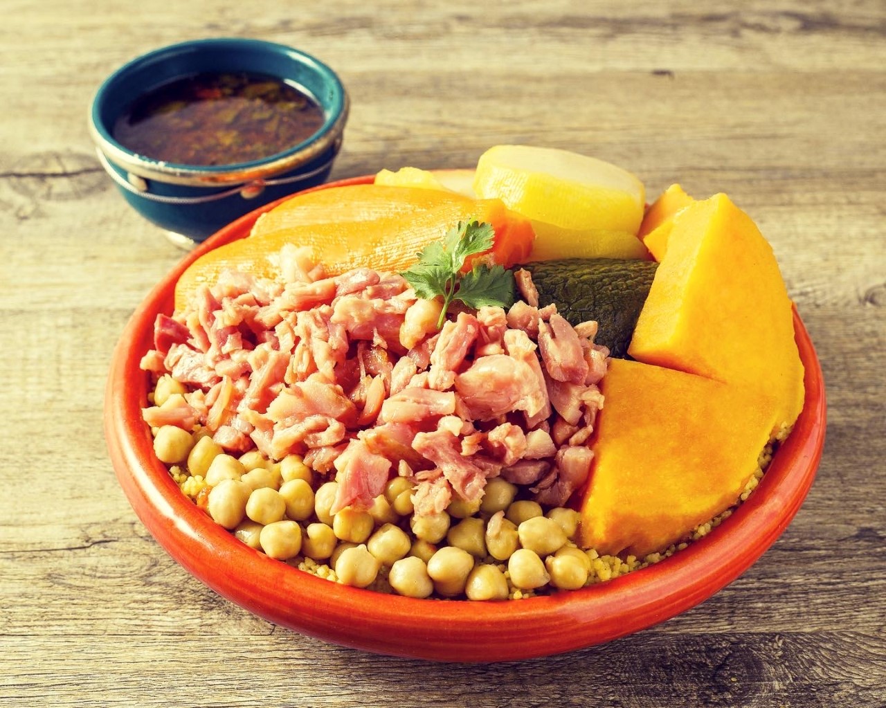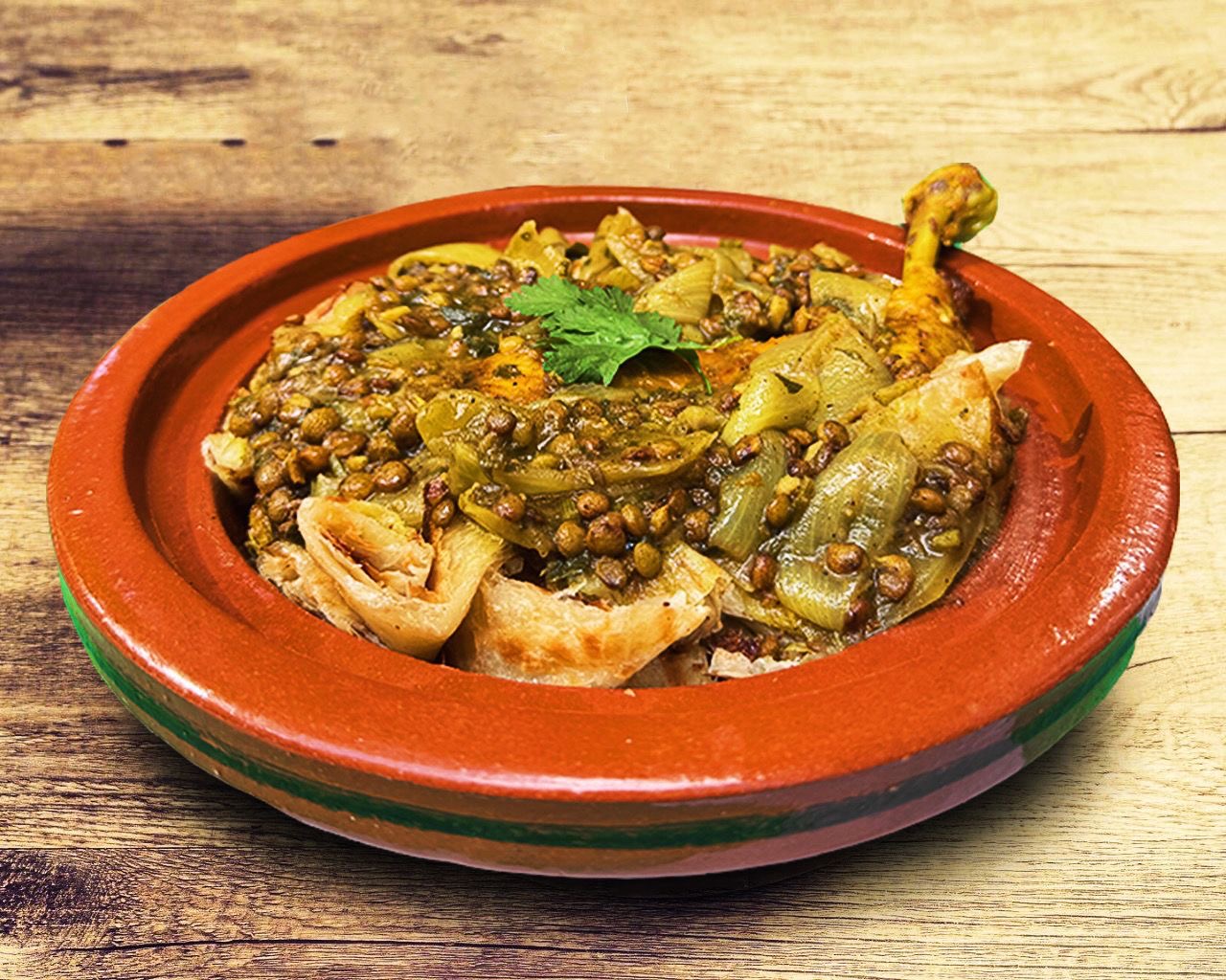 Mssemen coupées en lamelles, lentilles, poulet et plein d’épices dont nous gardons le secret !